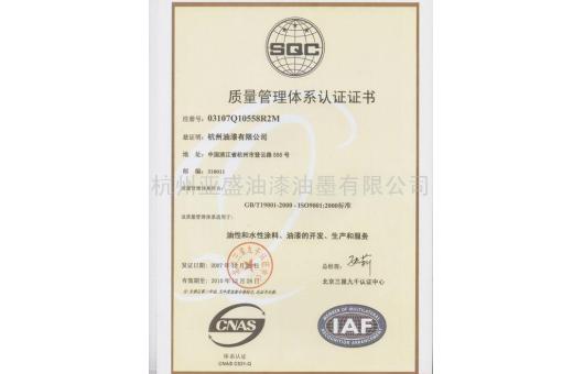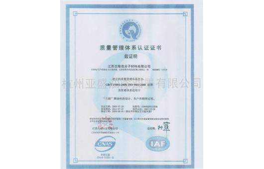 质量管理体系认证证书